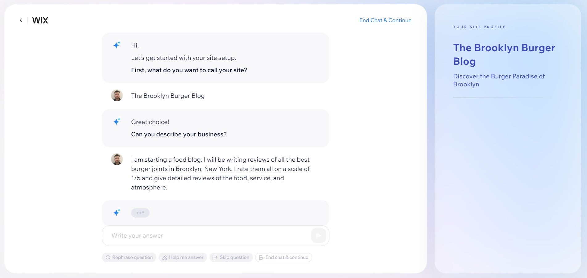 Setup is shorter and not quite as detailed as 10Web, but the key advantage of Wix is that once you do get set up, you’ve got access to so many AI tools.